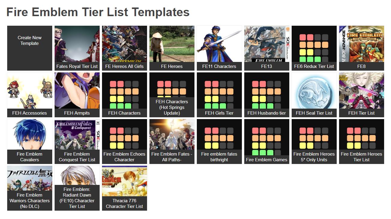 Fire emblem fates tier list maker. Share template on twitter share template on facebook. Over 20 fire emblem tier list templates available. Fire emblem fates is the third rank version of this game. Includes playable characters and a few npcs of birthright conquest and revelation. Im looking to make it as accurate as possible. Source code can be found here and was forked from here.