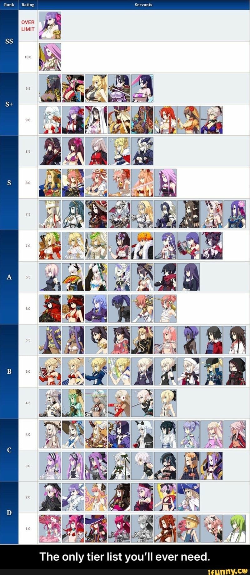 Guys this tier list is based on survivability so just because a servant i low on it doesnt mean they are trash like mama raikou she can tactical nuke like a pro and throw out damage like there aint no tomorrow shes just not the most durable cause of her class and skills focusing on damage. Welcome to our servant tier list for fgo fategrand order.